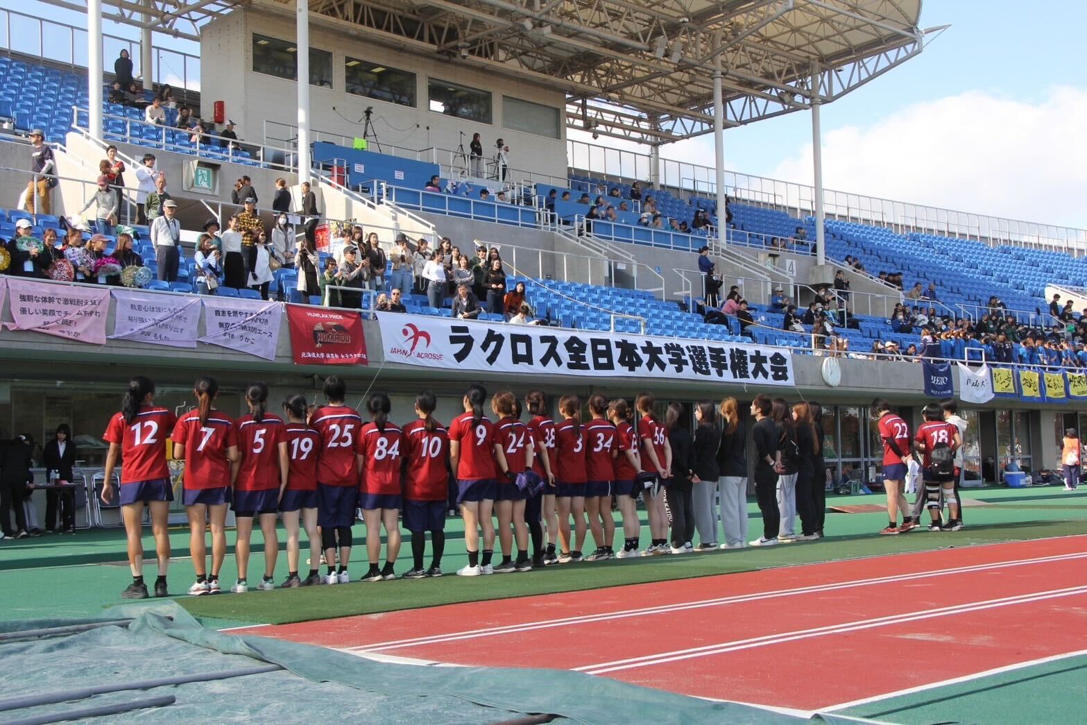 私たちは、ほぼ全員が初心者から始めるラクロスというスポーツで目標達成に向けて取り組んでいます。人数の規模や練習環境など他地区に比べて不利な部分もありますが、全国レベルへの意識を絶やさず練習しています。これからも切磋琢磨して実力を磨き続けていきますので、北海道大学女子ラクロス部の応援をよろしくお願いいたします。